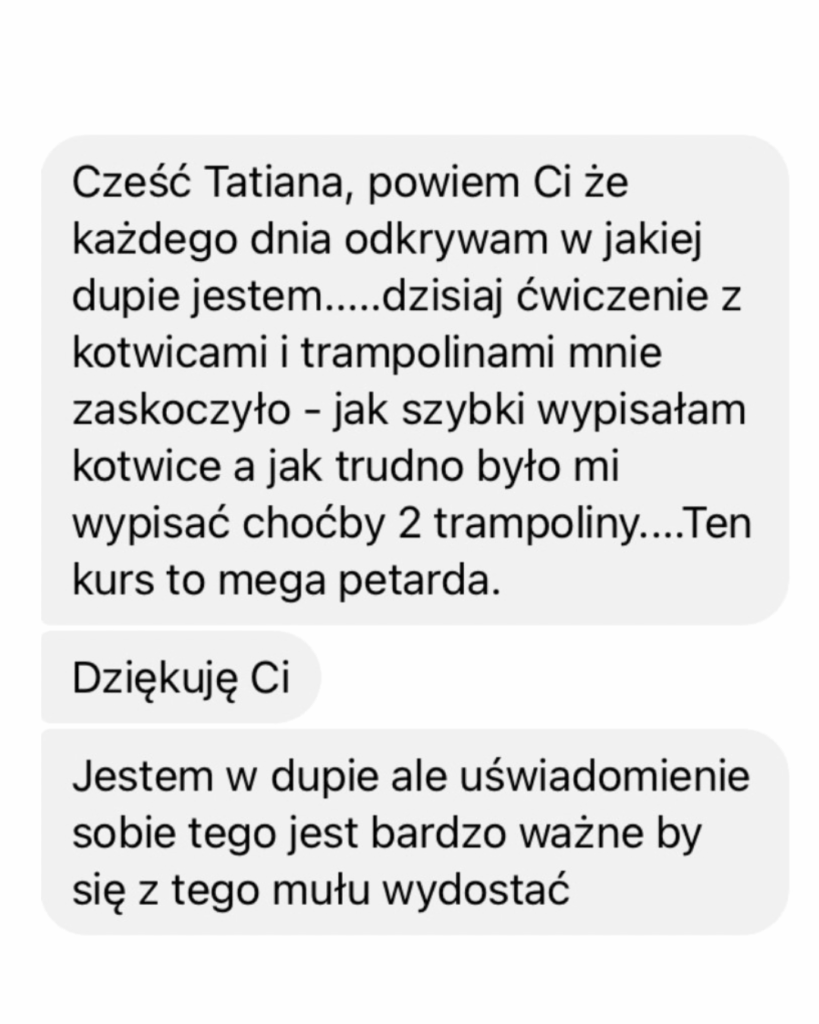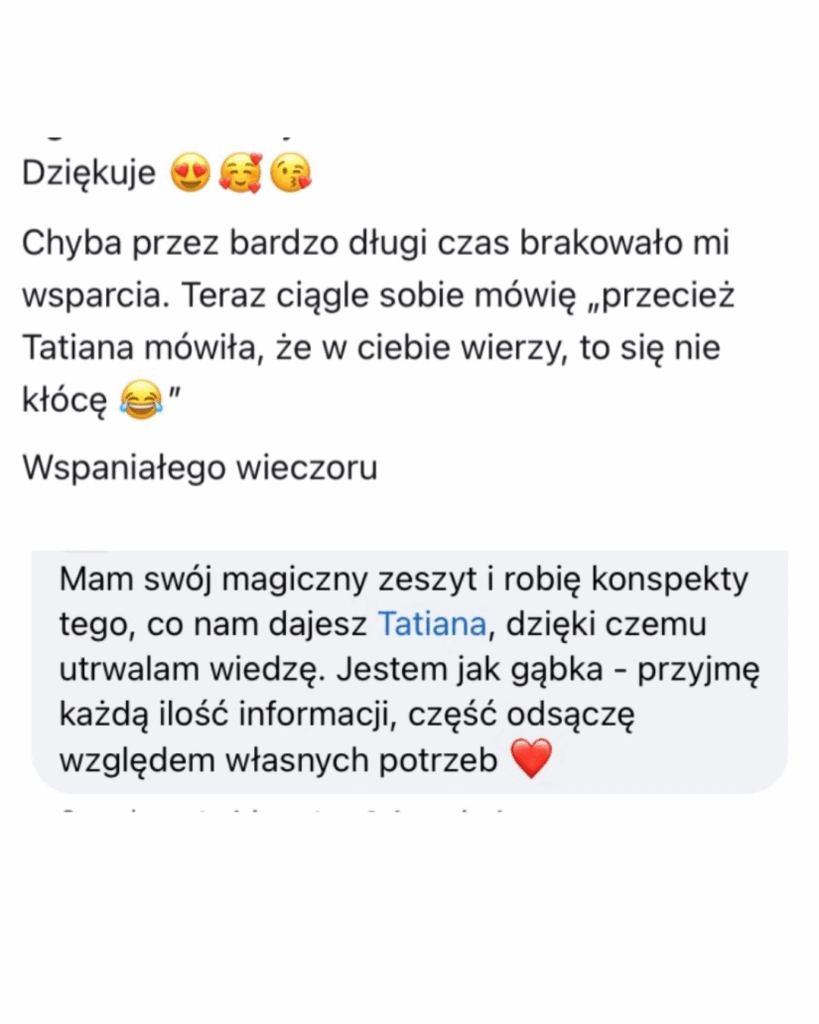 W przypadku pytań merytorycznych lub niejasności możesz napisać bezpośrednio do mnie: kontakt@tatianagalinska.pl